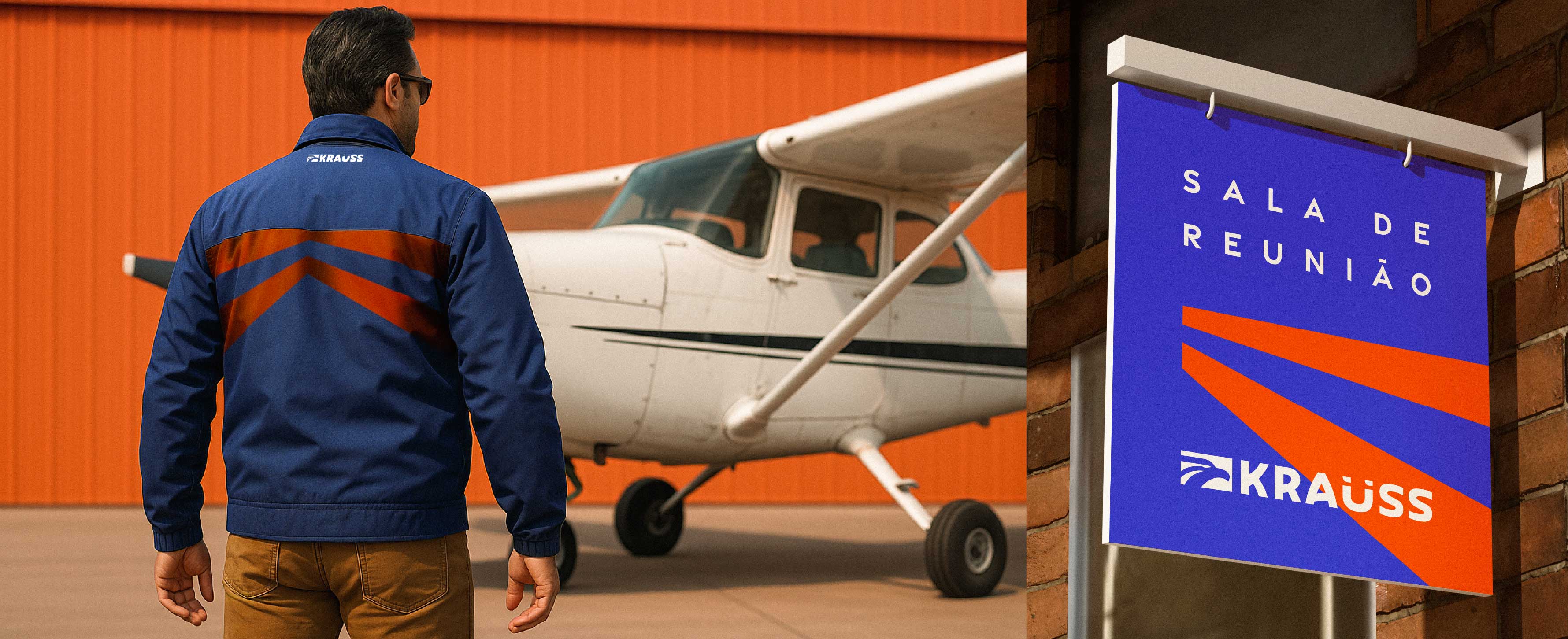 Kraüss, specialized in aircraft maintenance services, faced a challenge common to many family-owned businesses: a solid trajectory and a strong bond with the community, but a visual identity that had been left behind. With over a decade of experience in the aerospace sector, the brand recognized the need to update its presence — aiming for greater authority, impact, and alignment with its current phase. The challenge was to design a striking logo and select colors that would capture the energy of a company that has spent over 10 years flying — and helping others take flight.